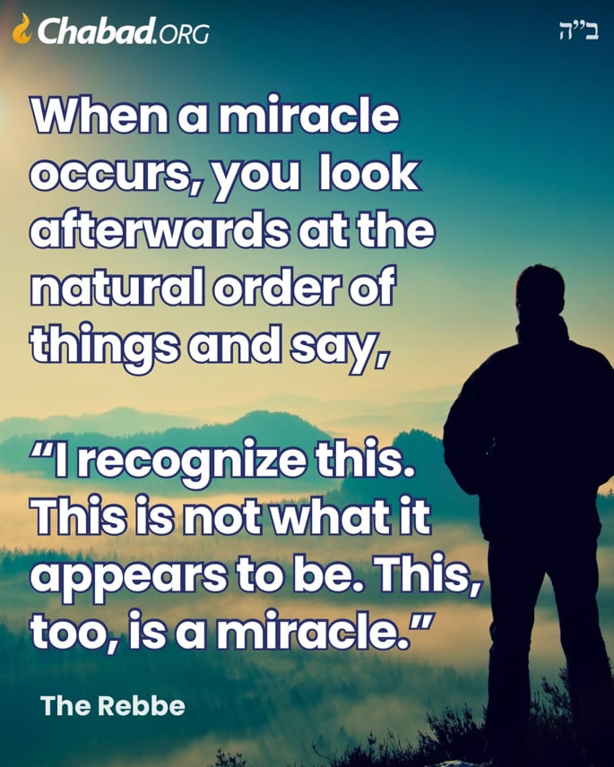 When G‑d makes a miracle, it is so that afterwards we may look at the natural order of things and say, “I recognize this. This is not what it appears to be. This, too, is a miracle.”